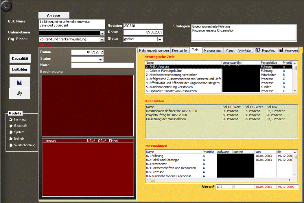 validierte Ziele mit definierten Zielgrößen unter Angabe von Meilensteinen und Messverfahren